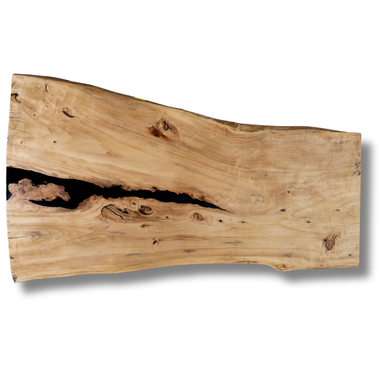 Discover the captivating elegance of this handcrafted table made from 200-year-old ash wood, a true masterpiece of nature and craftsmanship. The tabletop features an organic shape with a central deep blue epoxy resin inlay, decorated with small stones, reminiscent of an idyllic pond. The warm, natural wood with its distinctive grain and characteristic knots is perfectly complemented by the bright turquoise resin layer, creating a harmonious and modern design. With dimensions of 192 cm in length, 89.5 cm in width, and 4.5 cm in height, this table offers a generous surface, ideal for dining areas or stylish living spaces. The smooth surface ensures a pleasant feel and easy maintenance, while the high-quality craftsmanship guarantees durability and uniqueness.
