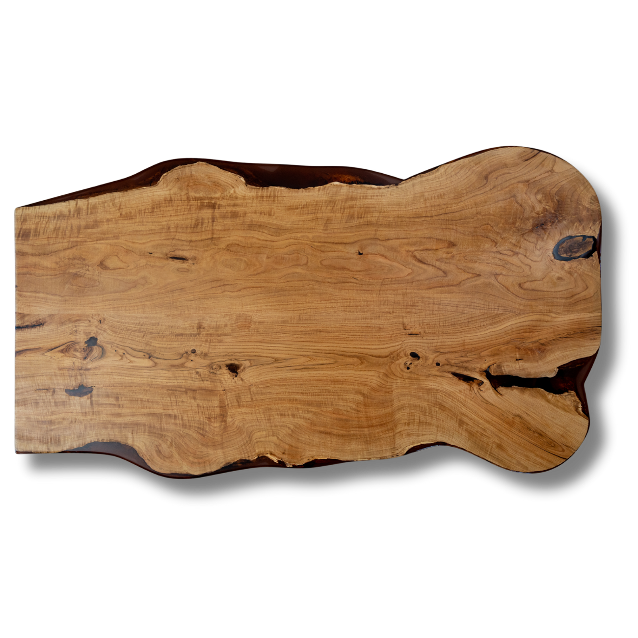 This stunning table is crafted from solid natural wood, featuring unique grain patterns and natural edges. The surface has been carefully polished to highlight the wood’s natural beauty, while the edges are finished with a dark resin layer that creates a modern contrast. Perfect for living or dining areas, this table offers a sturdy construction and timeless design.