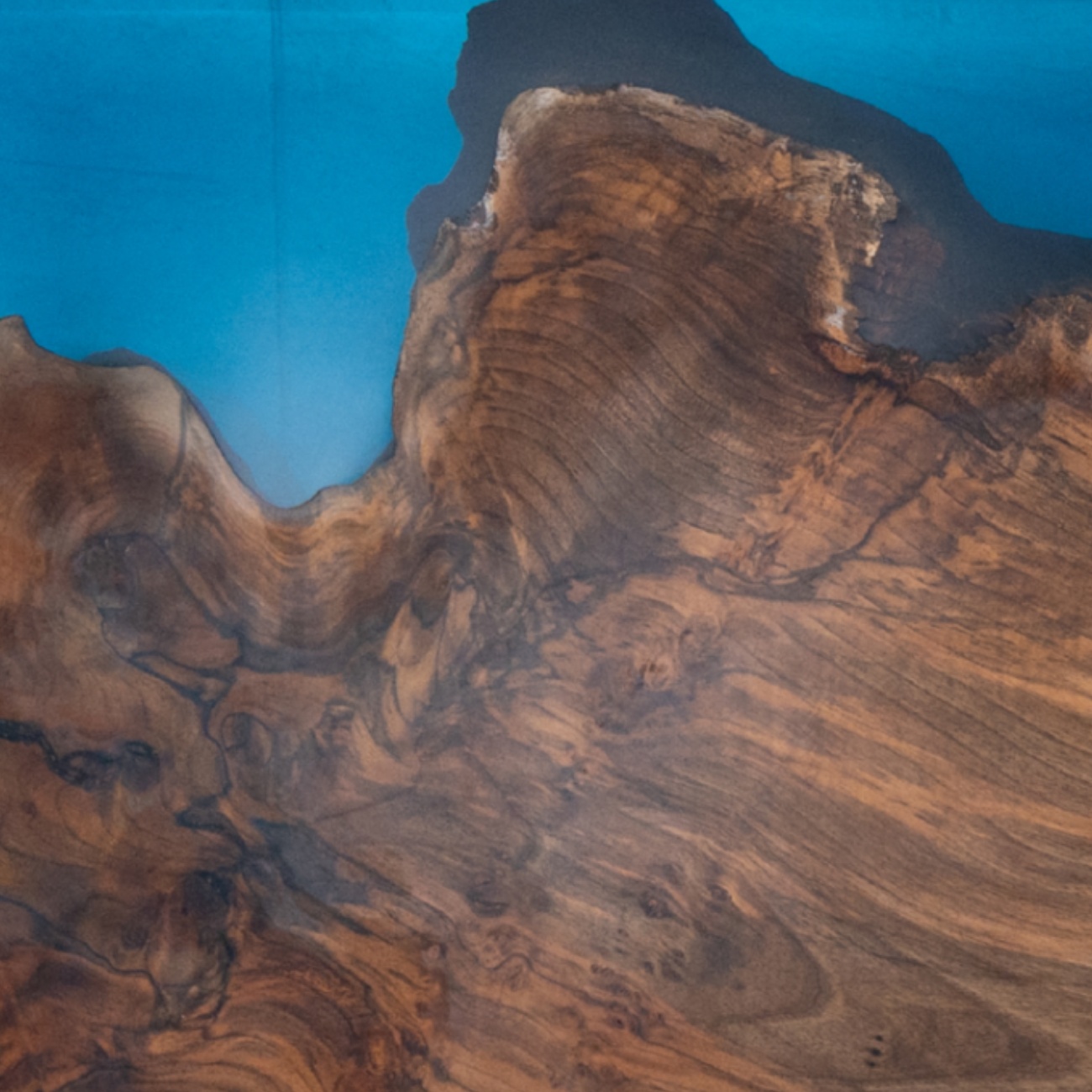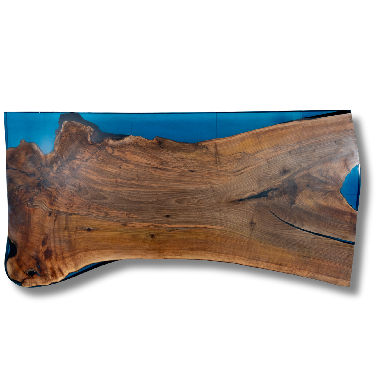 This unique table combines the natural beauty of wood with the modern elegance of blue resin. Crafted from high-quality solid wood with natural edges, the tabletop is enhanced by a smooth resin layer that is not only visually appealing but also easy to clean. The rustic grain of the wood contrasts perfectly with the vibrant blue of the resin, giving the table an individual character. Ideal for dining rooms, offices, or as a statement piece in modern living spaces. Dimensions: approx. 200 x 100 x 5 cm (length x width x height). Sturdy, durable, and a true one-of-a-kind.