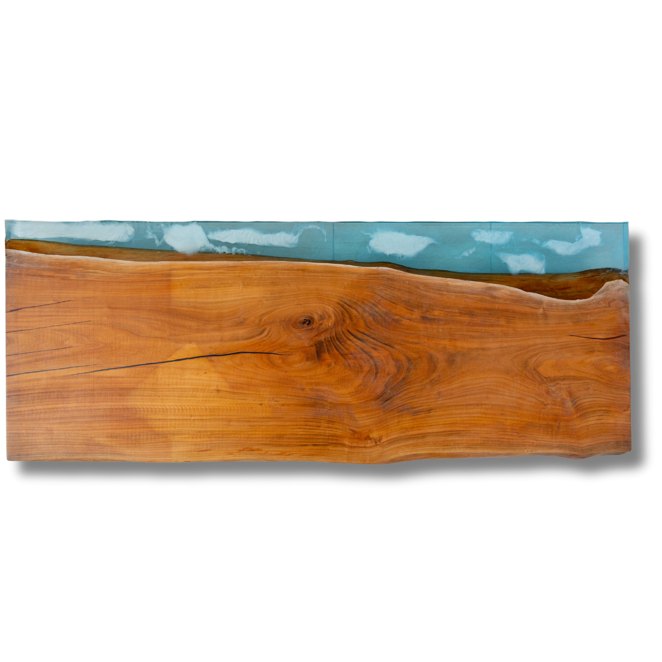 Dieses exklusive Möbelstück vereint warmes, massives Naturholz mit transparent-blauem Epoxidharz, das die Leichtigkeit und Tiefe des Meeres widerspiegelt. Durch die fließende Verbindung von Holz und Harz entsteht ein harmonisches Kunstwerk, das an eine Küstenlandschaft erinnert. Jedes Stück ist ein handgefertigtes Unikat – ein Blickfang, der Natürlichkeit und modernes Design in Ihr Zuhause bringt.